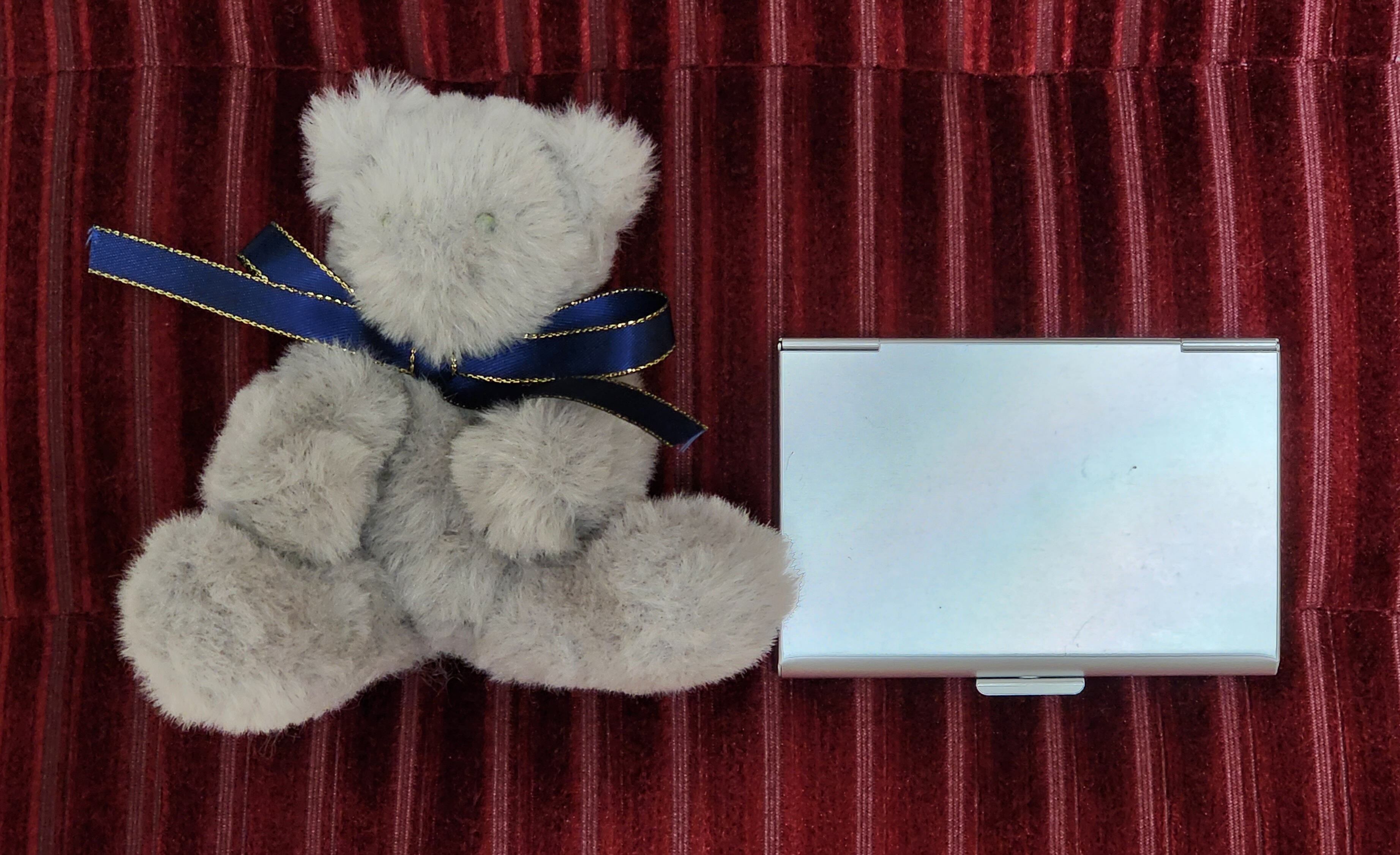 大きさの参考として写真に名刺ケースと一緒に撮ったものがありますのでご参考までにご確認ください。